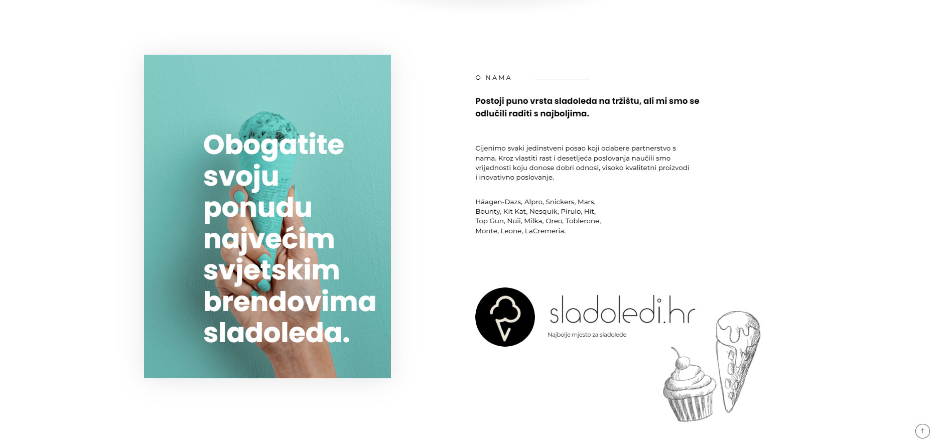 Interaktivna i zabavna web stranica posvećena velikim svjetskim brendovima sladoleda. Milka, Oreo, Kit Kat, Mars, Snickers, Bounty, Monte, Häagen-Dazs, svi na jednome mjestu! Za svaki brend posebno su dizajnirani i kreirani posebni elementi koje sadržajno čine određeni sladoled. Stranica je orijentirana svim korisnicima koji vole sladoled i gdje mogu vidjeti cijeli dostupan asortiman i ponudu na području Hrvatske. Uz svaki sladoled stoji opis kao i tablica s nutritivnim vrijednostima, informativnog karaktera. Također, stranica je prilagođena i velikim Retail i HoReCa kupcima, koji osim cjelokupne ponude sladoleda, mogu pronaći i logističke podatke, kao i opcije za najam škrinja.